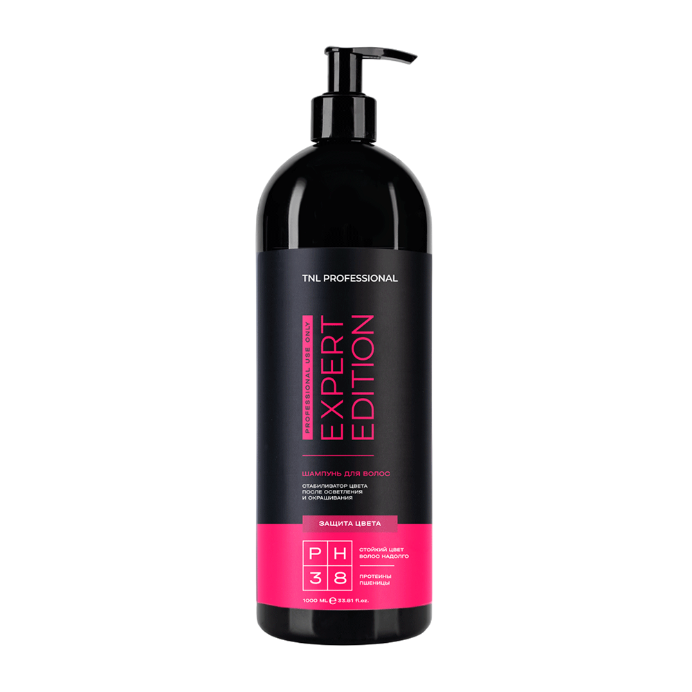 TNL ( ТНЛ ) Шампунь TNL Expert Edition - средство для защиты и фиксации цвета волос после осветления и окрашивания. Шампунь закрывает чешуйки волос, предотвращая быстрое вымывание красителя: сбалансированный состав поддерживает интенсивность цвета окрашенных прядей. Пониженное содержание pH 3,8 нормализует естественный кислотно-щелочной баланс волос и кожи головы после действия красящих составов. Уникальная формула с насыщенным содержанием гидролизованных протеинов пшеницы способствует заполнению пустот в структуре волос, сглаживая и восстанавливая поврежденные участки. Шампунь надежно запечатывает красящие пигменты внутри волоса, что продлевает стойкость окрашивания.