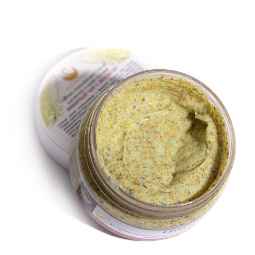 Применение: Разделяя волосы на проборы, нанесите скраб на влажную кожу головы и волос у корней, помассируйте легкими движениями в течение 3-5 минут, тщательно смойте теплой водой. В заключение процедуры вымойте голову с использованием шампуня. Вопреки ожиданиям скраб для волос хорошо смывается, его применение не вызывает больших сложностей. Использовать 1 раз в неделю.