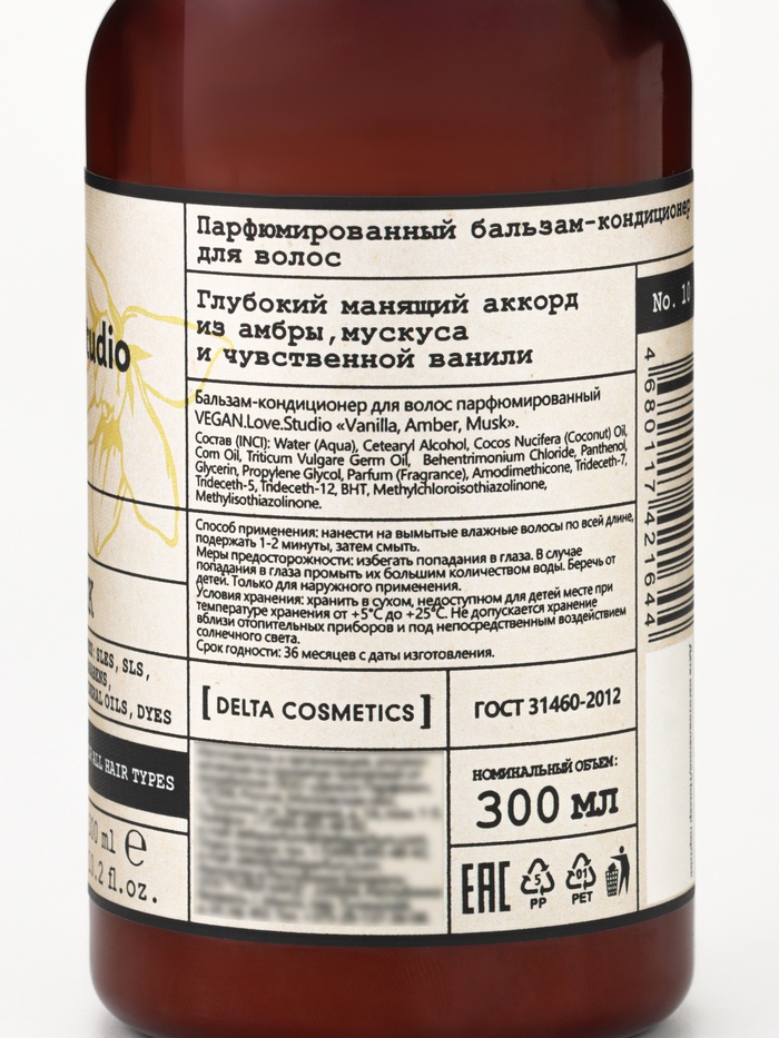 VEGAN.Love.Studio «Ваниль, Амбра, Мускус» — это нежный, обволакивающий уход, который восстанавливает волосы, делает их роскошно гладкими и дарит тонкий, утончённый аромат на весь день.