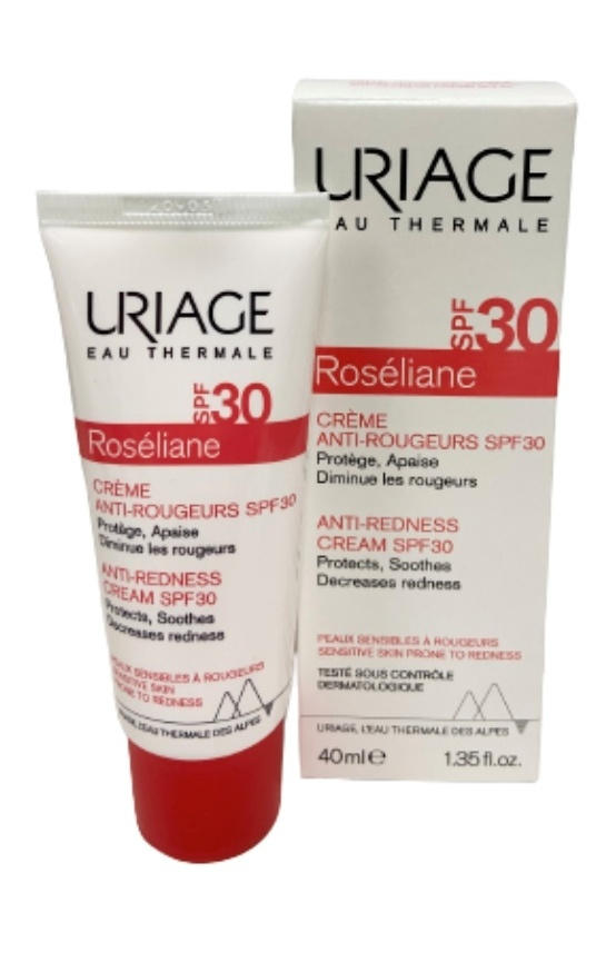 Благодаря Термальной воде Урьяж и эксклюзивному комплексу активных компонентов крем Uriage Roséliane Crème Anti-Rougeurs SPF30 уменьшает ощущение жара и стянутости кожи, обеспечивает высокую защиту кожи от UVA/UVB лучей, заметно уменьшает покраснения кожи и предотвращает их возникновения.