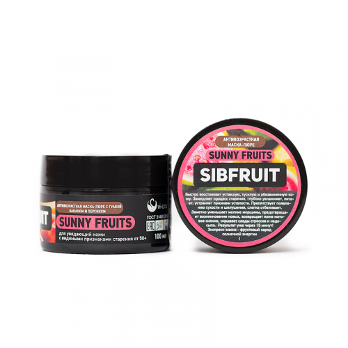 Антивозрастная маска-пюре SIBFRUIT Sunny fruits с гуавой, бананом и персиком уменьшает мелкие морщины, предотвращает возникновение новых, возвращает коже здоровый и ухоженный вид, скрывает следы усталости, стрессов и недосыпа. Один из основных ингредиентов маски – банан в тандеме с пектиновыми пюре других фруктов увлажняет, смягчает, тонизирует и восстанавливает клетки. Концентрированная экспресс-маска буквально адаптируется к потребностям вашей кожи.