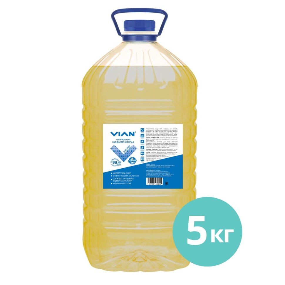 Натуральная мицеллярная вода на розлив, тара 5 кг - экономичная упаковка средства. Содержит объём 25 обычных упаковок мицеллярной воды VIAN.
