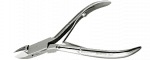 Маникюрные кусачки 265 - кусачки для обстригания кожи и кутикулы с удлинёнными ручками. Применимы в тех случаях когда нужно обстричь  боковые и околоногтевые валики, в том числе и кутикулу.  Длина лезвия 6 мм, двойная пружина на 20000 циклов, мощный тройной муфтовый сустав,  отполированная поверхность. Длина кусачек 118 мм.