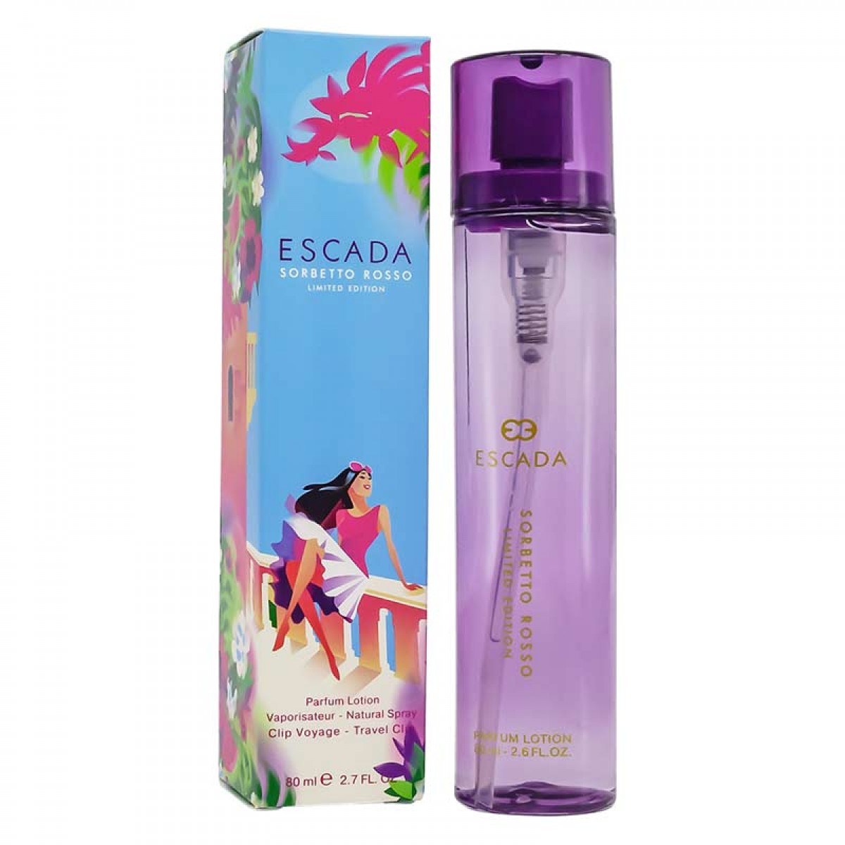 Escada Sorbetto Rosso Limited Edition, edp., 80 ml — парфюмерный коктейль, способный окружить владельцу праздником, подарить счастье и вдохновить на романтические приключения! Композиция составлена из спелого арбуза, клубники, розы, груши — всего того, что так любят девушки. Финальное трио — пралине, мускус и серая амбра. В интернет-магазине «Кристалл Парфюм» можно заказать брендовые духи из Турции и ОАЭ оптом с доставкой по РФ.