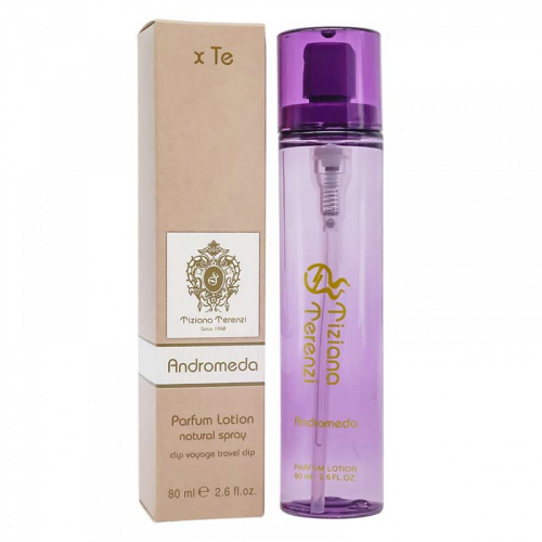 Tiziana Terenzi Andromeda – "унисекс". Открывают чарующую симфонию аккорды с Бергамотом и Сеном вкупе с Иланг-илангом. В сердцевине гармонично переливаются мотивы Фиалки и Лилии, Груши и яркой розы .Финальная часть композиции представлена тонами Бобов тонка, Ванили, Амбры и Кашмерана
