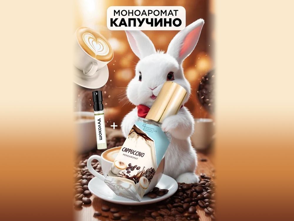Аромат Капучино начинается с нот свежесваренного кофе, которые мгновенно пробуждают чувства и создают ощущение пробуждения души. В нем звучат оттенки горячего шоколада и термису, добавляющие нотку сладости и тепла.