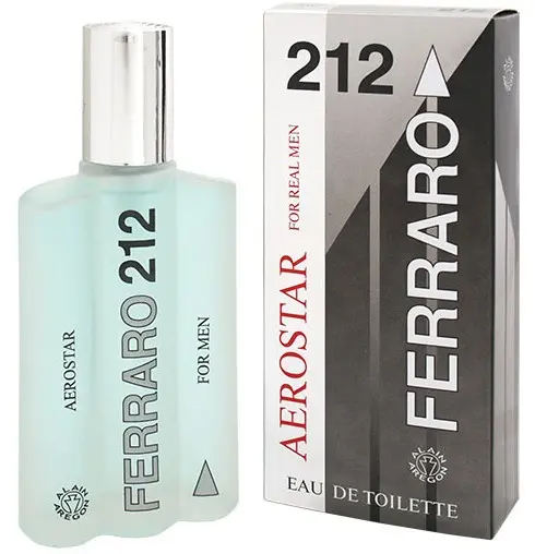 Аромат Aerostar Ferraro 212 от марки Alain Aregon классифицируется как аромат для мужчин и принадлежит семейству Древесные. Бергамот, Грейпфрут, Лаванда, Петитгрейн и Зеленый аккорд (зеленые ноты) образуют стартовый аккорд композиции, в сердце ─ Гардения, Имбирь, Шалфей и Зеленый перец; базу составляют Гваяковое дерево, Лабданум, Мускус, Сандал и Ветивер. Ароматическая композиция, дистиллированная вода, этиловый спирт (объемная доля см. на упаковке)