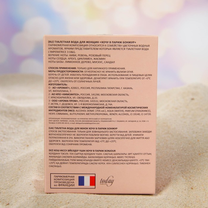 Производитель не зря выбрал для этого величественного аромата именно такое возвышенное название - никакое другое слово, кроме высшего символа величества, не смогла бы настолько полно отразить характер этой туалетной воды. Потому что при всей нежности и притягательности запаха, экзотические нотки букета все же оставляют в нем что-то неземное и неприступное, от чего наслаждение ХОЧУ В ПАРИЖ BONJOUR кажется высшим блаженством. А ведь по виду упаковки этого и не скажешь: он настолько стилизирован под лаконичный дизайн всемирно известной фирмы, что кажется очень далеким от роскоши.