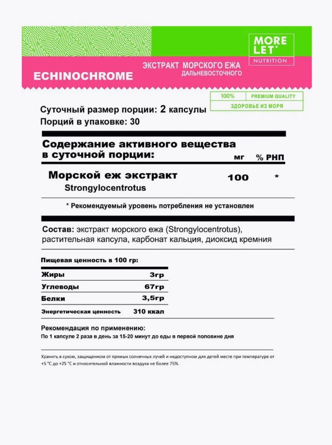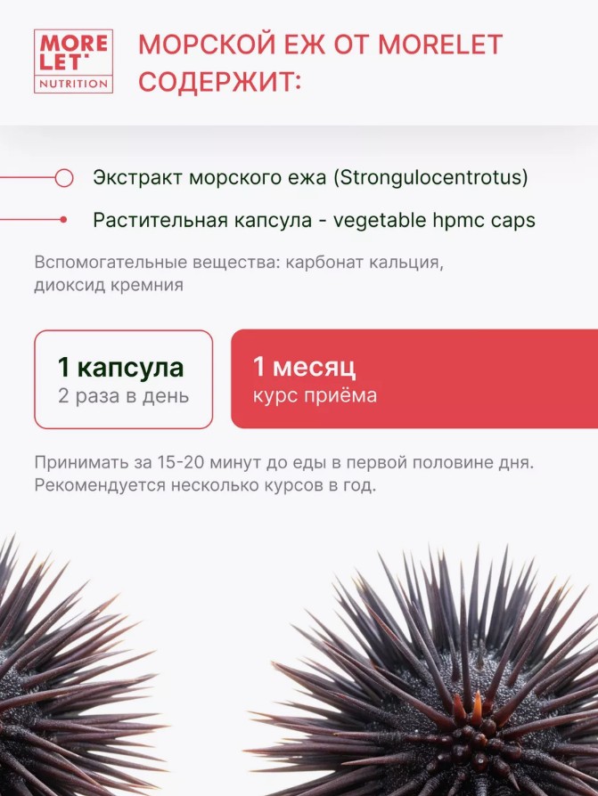 Еж морской дальневосточный экстракт раст.капс. / Echinochrome vegetable HPMC caps /MORELET