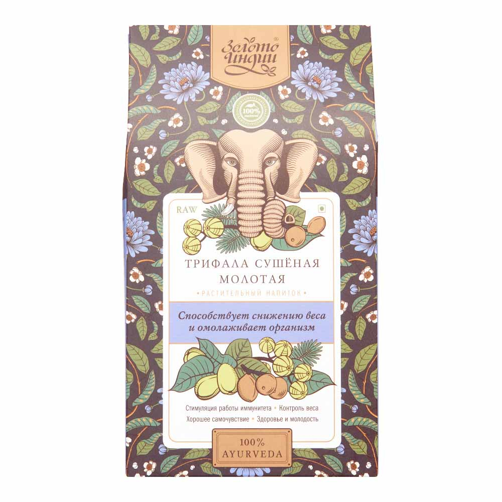 Трифала молотая состоит из 3-х плодов – Харитаки, Бибхитаки и Амалаки. Порошок благоприятно действует на весь организм, укрепляет его, оказывает лечебное действие. Замедляет старение, улучшает состояние кожи, волос и ногтей.