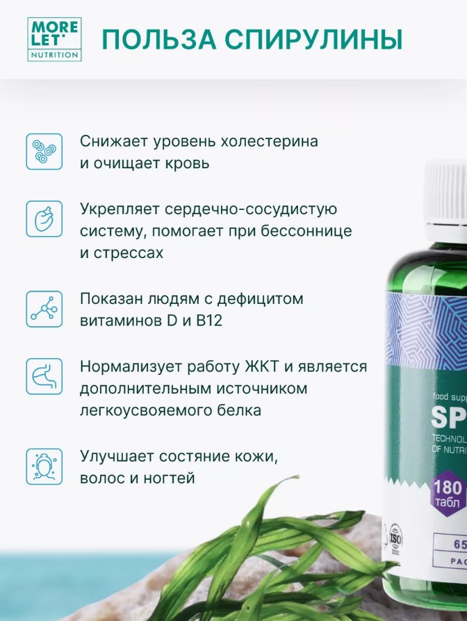 БАД со спирулиной является источником полезных микроэлементов, витаминов и