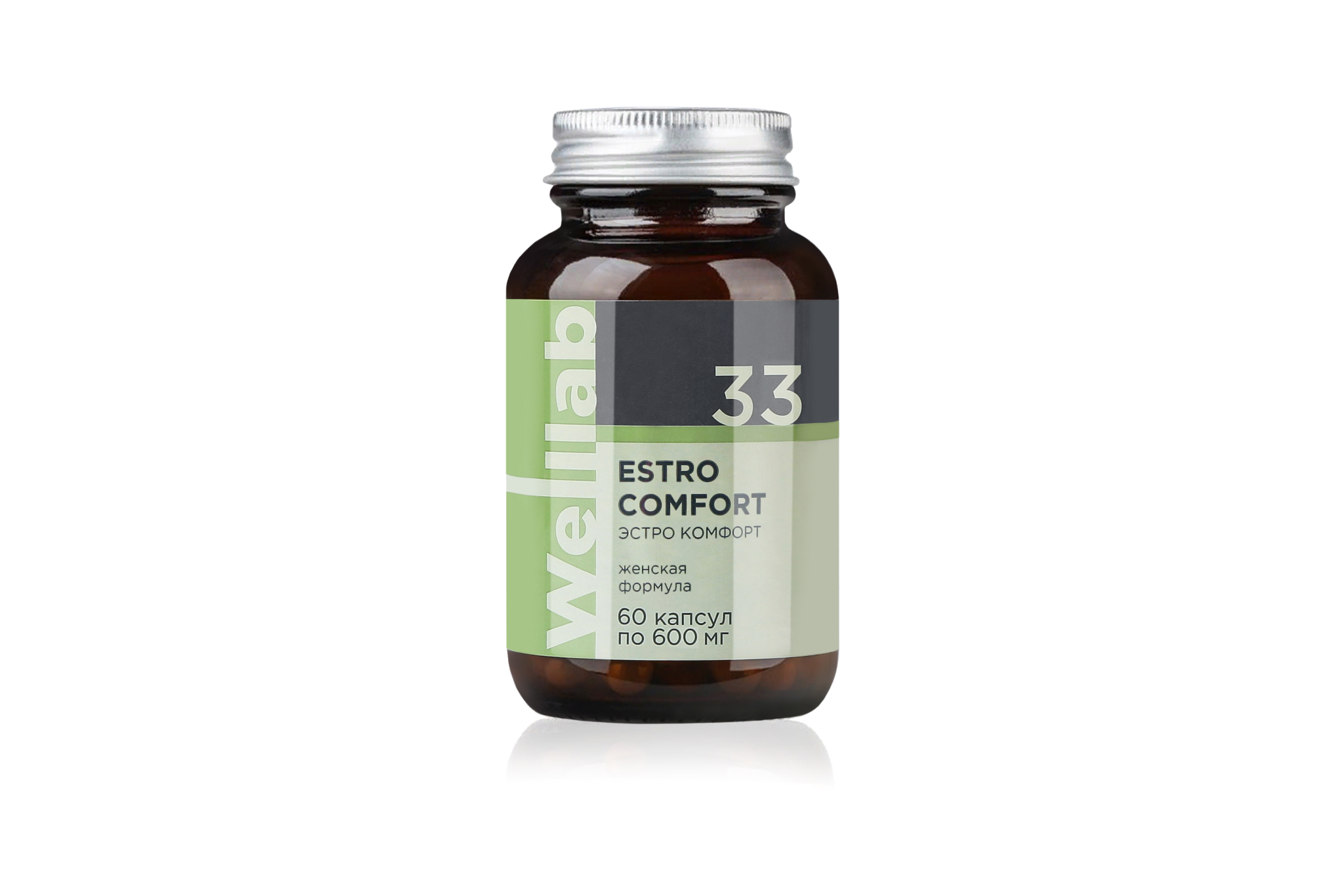Гормональный баланс играет решающее значения для здоровья и хорошего самочувствия женщины начиная с ранней юности и до менопаузы. WELLLAB ESTRO COMFORT содержит комплекс фитоэстрогенов, которые помогают стабилизировать эмоциональный фон и оказывают общеукрепляющее действие на организм женщины в периоды пре- и постменопаузы, а также при предменструальном синдроме. Не содержит гормонов, которые могут провоцировать возникновение побочных эффектов и вызвать привыкание. Упаковка: 60 капсул WELLLAB ESTRO COMFORT — биологически активная добавка к пище для женщин, содержащая комплекс фитоэстрогенов. По своему строению эти растительные молекулы сходны с собственными эстрогенами женского организма, но их активность во много раз ниже, благодаря чему они действуют мягко и постепенно, не вызывая резких гормональных скачков. БАД можно применять как женщинам в периоды пре- и постменопаузы, так и женщинам, испытывающим дискомфорт при предменструальном синдроме (раздражительность, подавленность, болезненность молочных желез и пр.). ОСОБЕННОСТИ СОСТАВА WELLLAB ESTRO COMFORT Дикий ямс помогает поддерживать гормональный баланс, предупреждает преждевременное старение кожи, оказывает положительное влияние на сердечно-сосудистую систему, помогая снижать уровень холестерина низкой плотности. Дягиль лекарственный имеет спазмолитическое, бактерицидное и противовоспалительное свойства. Цимицифуга обладает эстрогеноподобным действием, помогает уменьшить психоэмоциональные и вегетососудистые нарушения. Витекс священный поддерживает баланс эстрогена и прогестерона, помогает улучшить общее самочувствием при гормональных колебаниях, уменьшить тревогу и раздражительность, головную боль, болезненность молочных желез. Дамиана оказывает антисептическое действие на мочеполовую систему, положительно влияет на сексуальную функцию, облегчает интенсивность приливов при менопаузе. Валериана и мелисса оказывают мягкое успокаивающее действие, уменьшают нервозность, обладают умеренным спазмолитическим свойством. Глутаминовая кислота поддерживает работу нервной системы, повышает устойчивость организма к гипоксии. Фолиевая кислота участвует в процессе образования клеток крови (эритроцитов) при нехватке железа в организме, положительно влияет на нервную систему, помогает избежать перепадов настроения, способствует уменьшению сухости слизистых оболочек. В КАКИХ СЛУЧАЯХ РЕКОМЕНДУЕТСЯ Для облегчения климактерических симптомов (приливов, перепадов настроения, усталости, потливости, нарушении сна и пр.)*. При нарушениях менструального цикла, ПМС*. Для поддержания функционального состояния мочевыводящей системы. При первичных проявлениях остеопороза**. При преждевременных признаках старения кожи. * Совместно с другими рекомендациями врача. **При совместном приеме с кальцием и витамином D 3. БИОЛОГИЧЕСКИ АКТИВНАЯ ДОБАВКА К ПИЩЕ. НЕ ЯВЛЯЕТСЯ ЛЕКАРСТВЕННЫМ СРЕДСТВОМ. СОСТАВ: оболочка капсулы (желатин), дикого ямса (диоскореи) экстракт, цимицифуги экстракт, лактоза (носитель), дягиля лекарственного экстракт, валерианы экстракт (натуральный экстракт, гуммиарабик (носитель), диоксид кремния (агент антислёживающий)), глутаминовая кислота, витекса священного экстракт, дамианы экстракт, мелиссы экстракт, тальк (агент антислёживающий), кальциевая соль стеариновой кислот