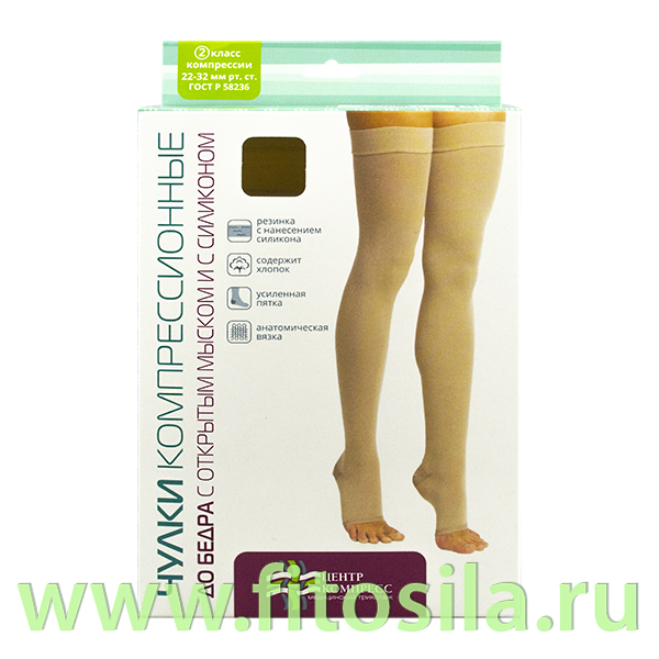 Чулки компрессионные до бедра с открытым мыском и с силиконом (Нанесение капельное ) (II класс компрессии, Типоразмер № 6).ПАРА Цвет - кремовый. Артикул - ЧСк2(п)-К