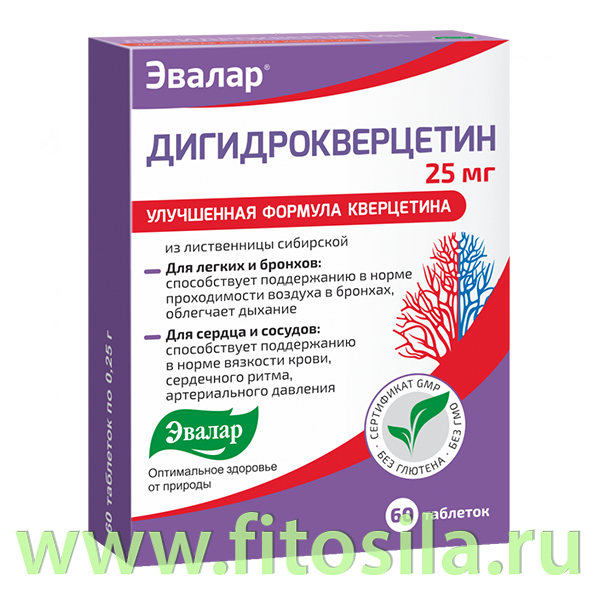 Дигидрокверцетин 25 мг, таб. №20 по 0.25 г (для сосудов и капилляров) Эвалар БАД
