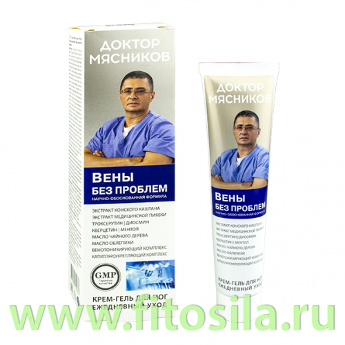 Александр Леонидович Мясников Российский врач в четвертом поколении. Компетентность его советов не вызывает сомнений, так как за его плечами огромный опыт работы в РФ и за границей, а также обширная медицинская практика. Совместно с ним разработана серия кремов для ног: Гирудотерапия, Вены без проблем, Тяжесть отеки ног, Судороги ног.