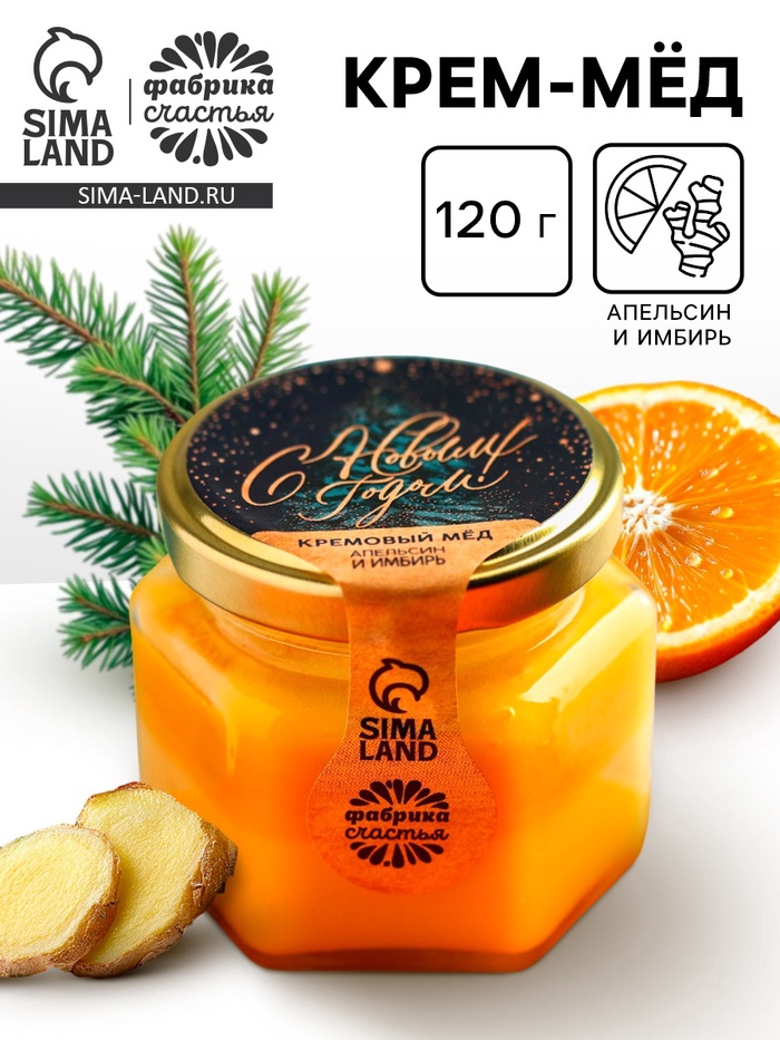Мёд кремовый двухслойный «С Новым Годом», с апельсином и имбирем, 120 г