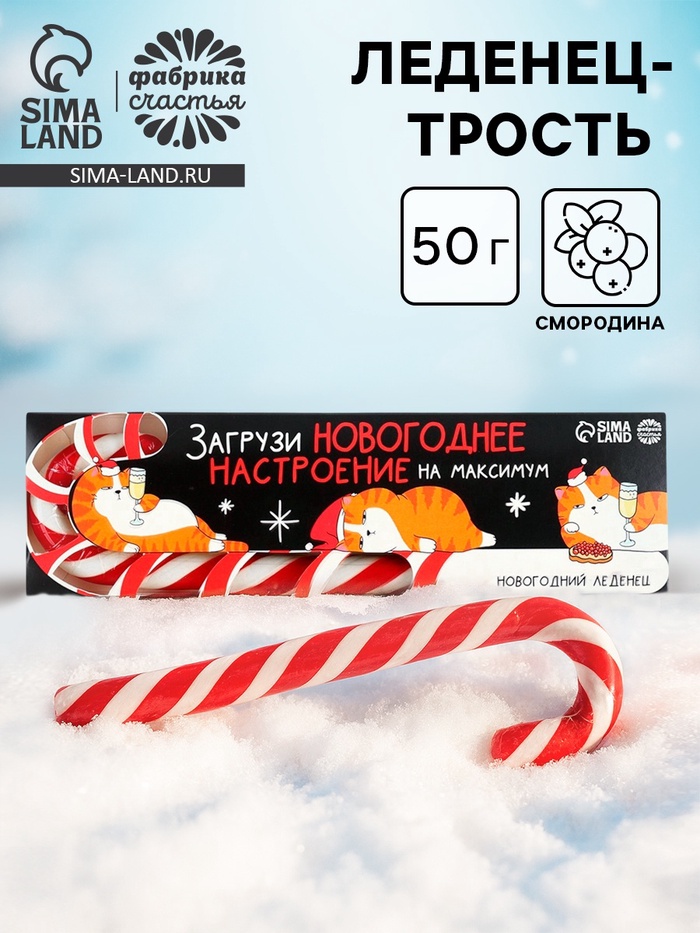 Леденец - трость новогодний «Загрузи новогоднее настроение», со вкусом смородины, 50 г