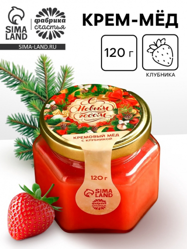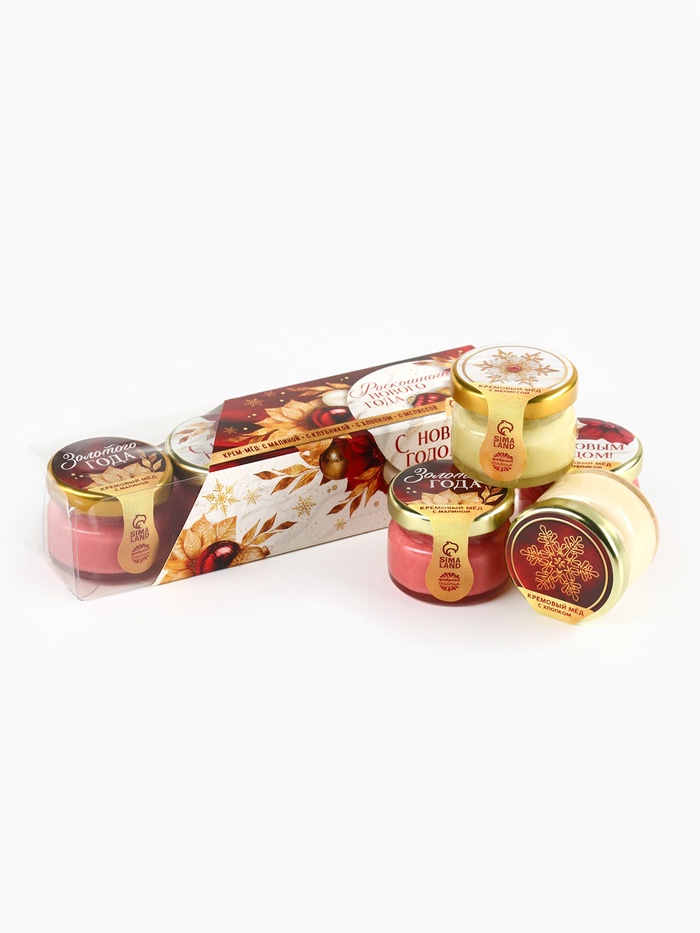 Мёд кремовый «С новым годом», мелисса, хлопок, малина, клубника, 120 г (набор 4 шт.×30 г)