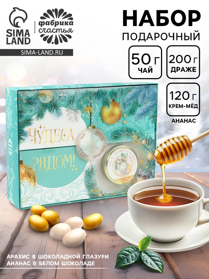 Составляющие набора: Арахис, Чай, Крем-мёд