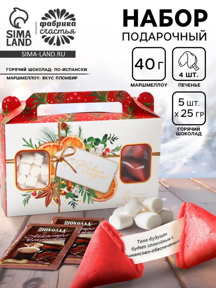 Подарочный новогодний набор «Желания сбудутся»: горячий шоколад, маршмеллоу, печенье с предсказаниями