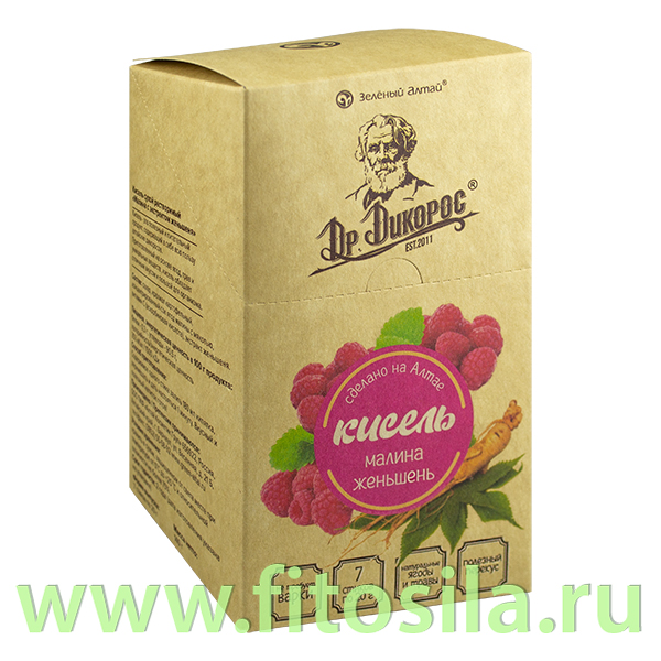 Кисель сухой растворимый «Малина с экстрактом женьшеня» 7стиков по 20гр "Зеленый Алтай"