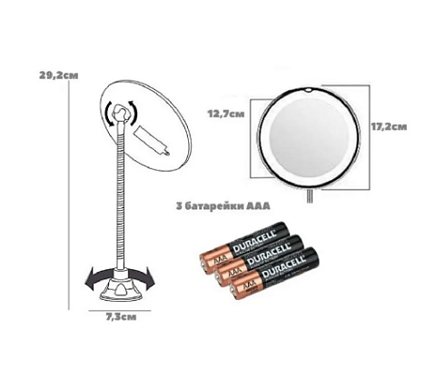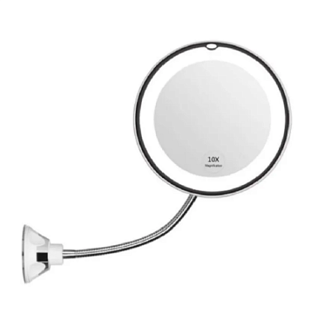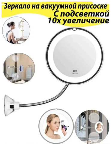 Настенное зеркало с 10-ти кратным увеличением и подсветкой легко установить с помощью присоски и отрегулировать его положение с помощью гибкого держателя. Зеркало имеет увеличение в 10 раз и вы сможете обратить внимание на все мельчайшие детали, также имеется кнопка для включения подсветки. Благодаря своей компактности, зеркало найдет место и в вашем чемодане, если вы захотите взять его в поездку. Десятикратное увеличение изображения без искажения. Зеркало можно вращать на 360 градусов и подобрать наиболее подходящий для вас угол. Легко и надёжно крепится и отсоединяется от любой поверхности. Идеально для нанесения макияжа. Мужчины также оценят преимущества этого зеркала во время бритья.