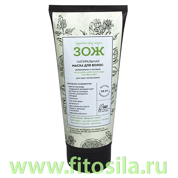 Маска для волос увлажнение и питание "ЗОЖ" создана на основе цветочной воды липового цвета.