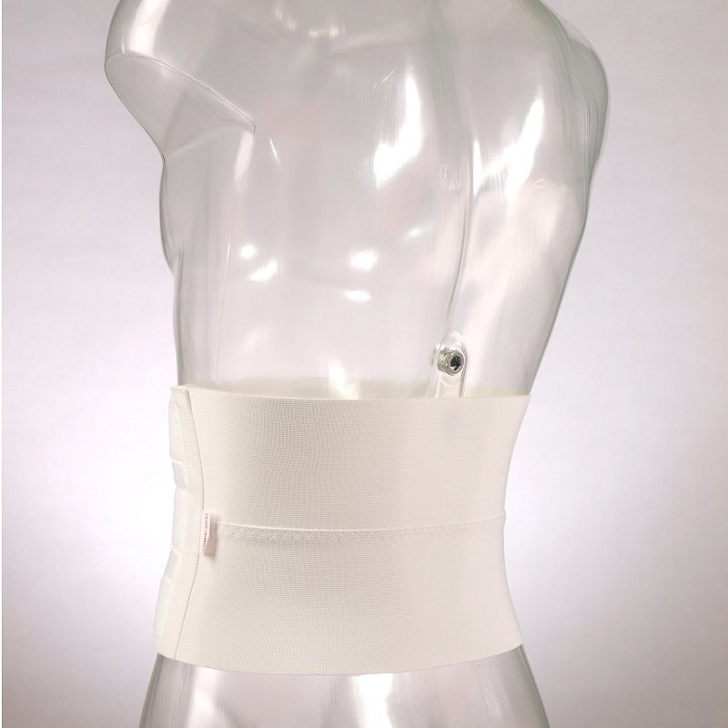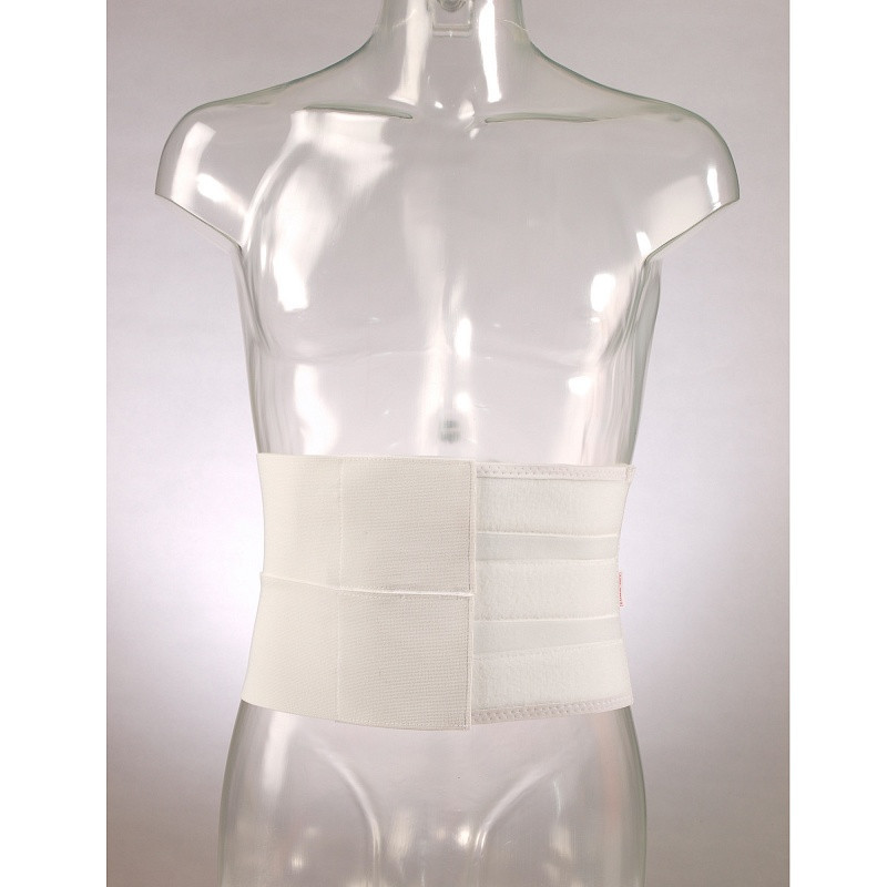 Ортез выполнен из медицинского эластика. Обеспечивает фиксацию послеоперационного шва. Поддерживает переднюю и боковую брюшные стенки, а также поясничную область. Может использоваться для фиксации нижнегрудного отдела у женщин и грудного отдела у мужчин. Бандаж препятствует образованию послеоперационных грыж. Также данный пояс показан при наличии дренажей на передней брюшной стенке, которые удобно выводить между панелями, не нарушая их функции. Высоту пояса выбирают в зависимости от длины послеоперационной раны и роста человека. Пояс должен полностью перекрывать послеоперационную рану.