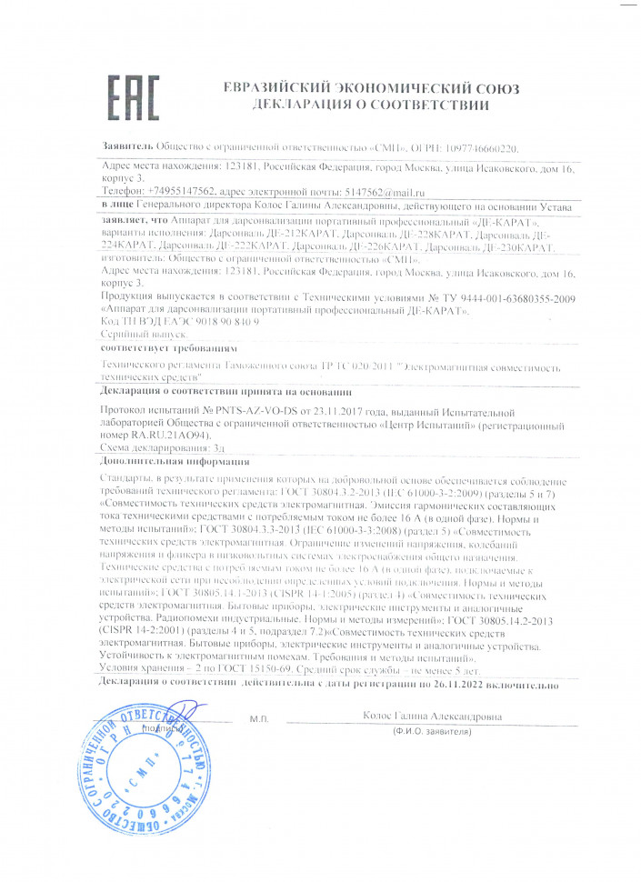 Прибор для дарсонвализации ДЕ-212 КаратДарсонваль КАРАТ ДЕ-212, в отличие от многих других подобных устройств, имеет универсальный фиксатор насадок, который позволяет использовать любые электроды.;_x000D__x000D_Используя Дарсонваль ДЕ-212 КАРАТ, вы можете поддерживать отличное состояние кожи и организма в целом. Процедура занимает всего лишь 10-20 минут в день, при этом, при использовании Дарсонваля ДЕ-212 КАРАТ, не нужно тратить время на косметологов и посещение различных салонов._x000D__x000D_Дарсонваль КАРАТ ДЕ-212 можно использовать не только дома, но и в медицинских и косметических учреждениях, благодаря его высокой эффективности и надежной конструкции. В комплекте поставляются 4 насадки, которые позволяют использовать прибор для ухода за кожей на любых участках тела, а так же и на волосистой части головы.С помощью насадок Вы сможете прижигать прыщи, лечить остеохондроз и избавляться от целлюлита._x000D__x000D_СПОСОБ ПРИМЕНЕНИЯ:_x000D__x000D_Выбрав соответствующую насадку, включите дарсонваль КАРАТ ДЕ-212 и при помощи регулятора напряжения установите максимальную мощность, при которой Вы не будете испытывать дискомфорт. В течение 10-20 минут плавными круговыми движениями перемещайте электрод вдоль выбранного участка тела.;Дарсонваль ДЕ-212 КАРАТ генерирует импульсы высокого напряжения с частотой 100 кГц, в результате чего между электродом и кожей пациента возникают электрические разряды, которые воздействуют на ткани и нервные окончания, что приводит к улучшению кровообращения и обмена веществ.