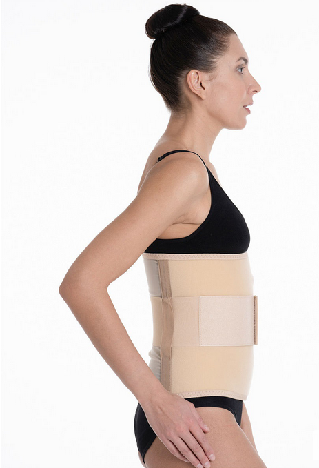 Бандаж средней степени фиксации представляет собой широкий пояс (ширина – 30 см), который способен полностью закрывать переднюю брюшную стенку и послеоперационные раны. Создаваемая компрессия достаточно умеренная, помогает избежать рисков возникновения послеоперационных грыж, что часто бывает после оперативных вмешательств. br /