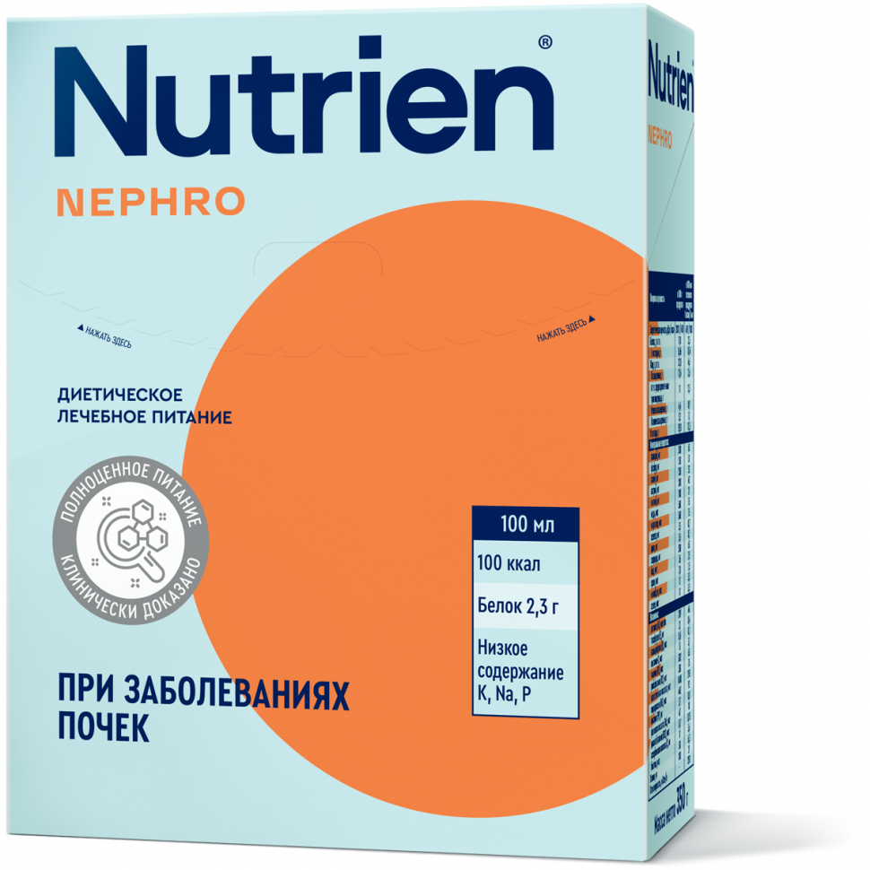 Cпециализированная полноценная смесь для диетического лечебное питания детей старше 3-х лет и взрослых с заболеваниями почек и почечной недостаточностью, в том числе получающих диализную терапию (гемодиализ, перитонеальный диализ). Содержит биологически ценный белок, обогащена L-гистидином.