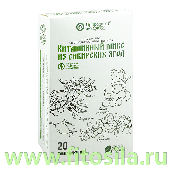 Натуральный быстрорастворимый напиток Витаминный микс из сибирских ягод 20 саше по 2 гр. Природный лекарь