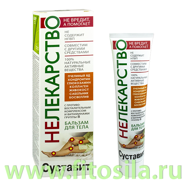 Бальзам для тела " Суставит Нелекарство пчелиный яд и хондроитин" - эффективное средство на основе природных компонентов. Способствует нормализации функционального состояния. Стимулирует естественную регенерацию тканей, препятствует развитию деструктивных процессов.