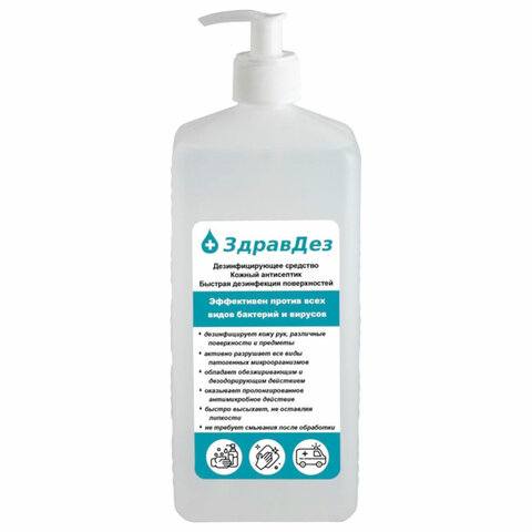 Антисептик для рук и поверхностей спиртовой (68%) с дозатором 1 л, ЗДРАВДЕЗ, дезинфицирующий, жидкость, ЗДА-568, 609548