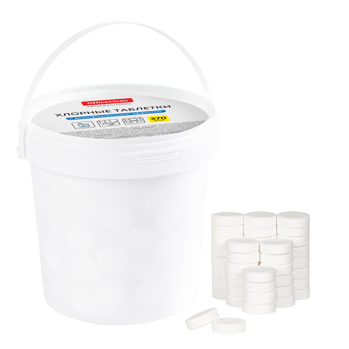 Хлорные таблетки OfficeClean Professional с дезинфицирующим эффектом – отличное решение для уборки. Таблетки упакованы в пластиковое ведро в количестве 370 штук. Вес – 2,7 ± 0,15 г. Таблетки предназначены для ежедневного и периодического мытья, очистки и антибактериальной обработки всех типов водостойких моющихся поверхностей. Отлично подойдут для уборки в производственных, офисных, складских, кухонных, гигиенических и других помещениях организаций общественного питания (кафе, барах, ресторанах, столовых), торговых и деловых центров, медицинских, образовательных и иных учреждений, спортивно-оздоровительных и культурно-досуговых сооружений, предприятий промышленности, гостиниц и вокзалов, на всех видах транспорта (корпусов и двигателей и пр.), местах общего пользования и в быту. Температурный интервал режима хранения и транспортировки – от -30 до +30 °C. • Количество таблеток: 370; • Упаковка: пластиковое ведро; • Обрабатываемая поверхность: любая.