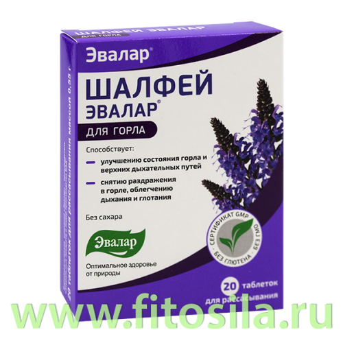 Шалфей, таблетки для рассасывания №20 по 0,55 г блистер Эвалар БАД