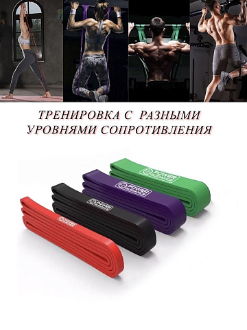 Набор фитнес петель – это универсальный тренажер для занятий в зале, домашних тренировок. Тренировочные фитнес петли для разных групп мышц. При растяжении нагрузка плавно увеличивается: чем сильнее растягивается петля, тем выше нагрузка. На каждой петле указан диапазон нагрузки. Сопротивление красной резинки 7-16 кг, черной -11-29 кг, фиолетовой - 16-38 кг, зеленой - 23-56 кг. Первое значение - нагрузка при начальном растяжении, второе - при максимальном.