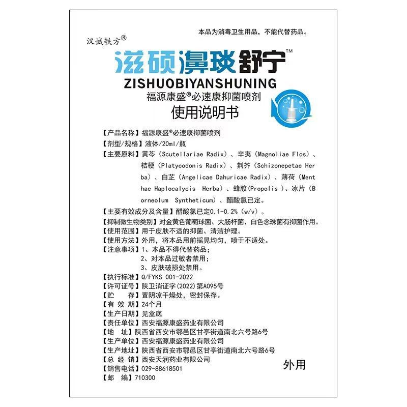 Спрей для носа на лечебных травах ZI SHUO BIYAN SHUNING ,20 мл.