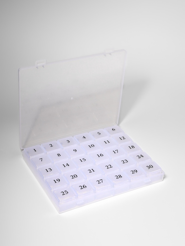 Таблетница - органайзер на месяц, 21.3×17.5×2.7 см, 30 секций, цвет прозрачный