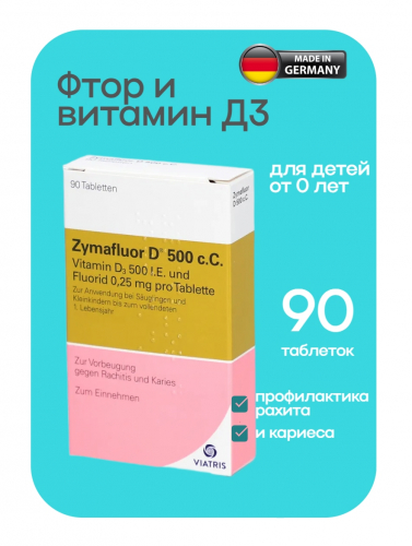 витамин д3 и фтор Зимафлюор Zymafluor MEDA 90 таб (Германия)