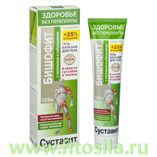 Гель - бальзам Суставит. Бишофит с пчелиным ядом - эффективное натуральное средство профилактики заболеваний суставов и позвоночника. Создан на основе уникального природного минерала бишофит, хондропротек-тора глюкозамин и экстрактов лекарственных растений. Способствует естественной регенерации суставных тканей, препятствует развитию дистрофических процессов и преждевременному старению суставов.