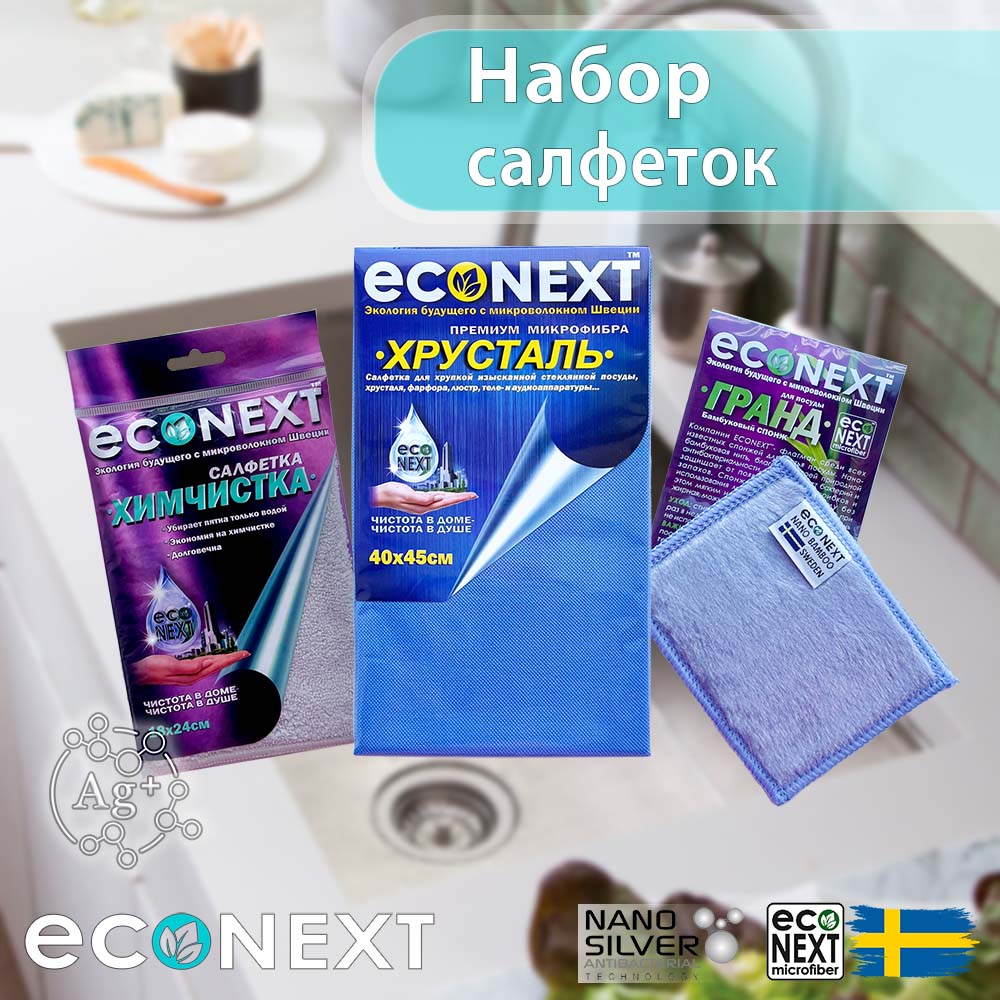 Акционный комплект салфеток: "Хрусталь", "Химчистка", "Гранд" EcoNext