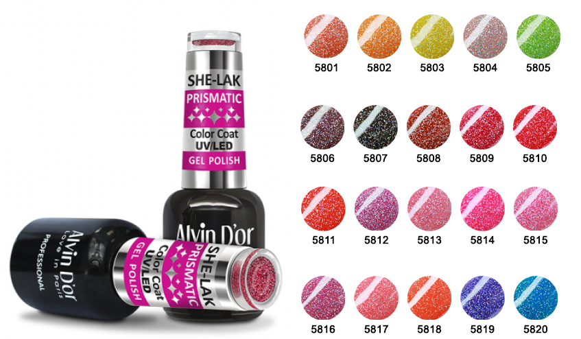 Шеллак ногтей Prismatic SHE-LAK. Инновационная 3D формула с призматическими микро блёстками создаёт многогранные радужные переливы. Обеспечивает стойкость более 2-х недель. ACRYLATE COPOLYMER CELLULOSE ACETATE BUTYRATE ISOBOMYL ACRYLATE HYDROXY CYCLOHEXYL PHENYL KETONE PIGMENT