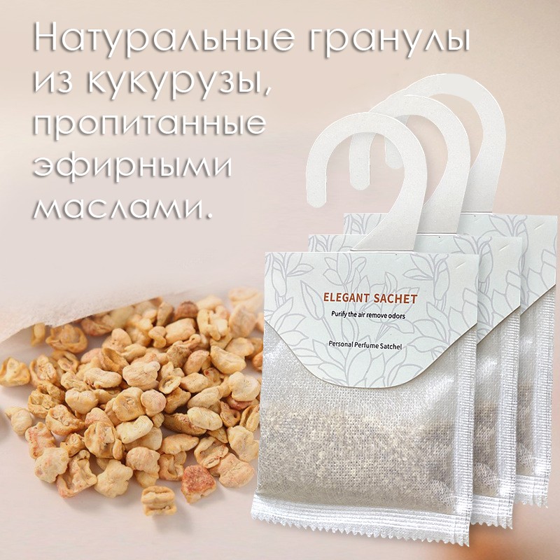 Саше имеет удобные вешалки, позволяющие закрепить их на перекладине между висящей одеждой, обеспечивая равномерное распределение аромата.