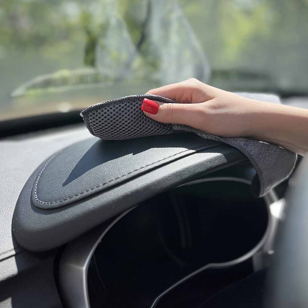 Внутри салона в сухом виде хорошо собирает пыль с панели и обладая антистатическим эффектом на панель долго не садиться пыль.