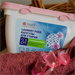Капсулы предлагают комплексное решение совмещая в себе сразу два действия: очищение и уход. Они идеально подходят для стирки черных, белых и цветных тканей, обеспечивая бережное отношение к каждому волокну. Благодаря гипоаллергенной формуле, они подходят даже для самой чувствительной кожи, обеспечивая комфорт при ношении одежды.