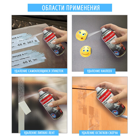 Средство BRAUBERG MAX для быстрого и эффективного удаления остатков клейкой ленты, тонировочной пленки, информационных наклеек и рекламы. Средство обеспечивает быстрое и безопасное удаление остатков клея, различных клейких лент, самоклеящихся этикеток, наклеек и жевательной резинки с твердых поверхностей в домашних условиях, офисе, на производстве. Объем баллона составляет 210 мл. Гелеобразный тиксотропный состав после распыления не стекает с поверхности и эффективно растворяет остатки клея без повреждений и царапин на поверхности. Состав огнеопасен! Баллон необходимо предохранять от воздействия прямых солнечных лучей и нагревания свыше 50°С. Запрещается распылять вблизи источников открытого огня и раскаленных предметов! Использовать строго при выключенном оборудовании!