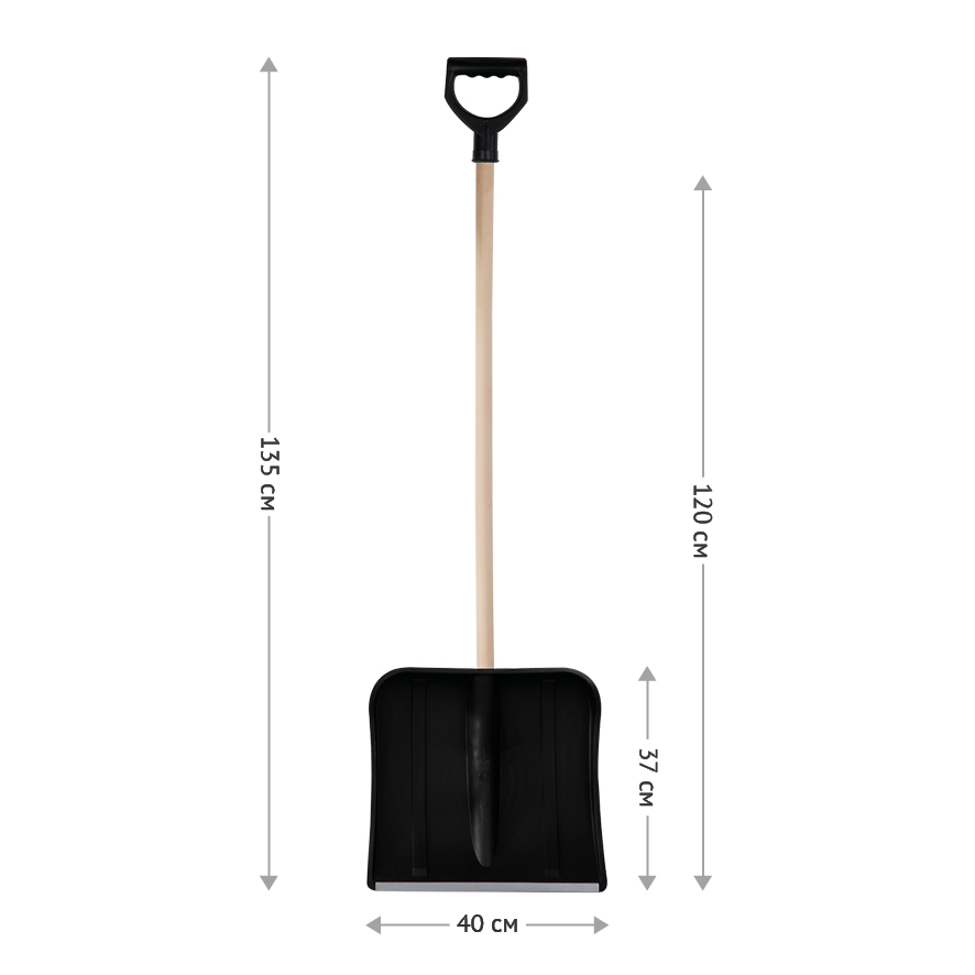 Лопата снеговая Vega, пластиковая, ковш 40*37см, с деревянным черенком, с ручкой и с алюминиевой планкой, 329770