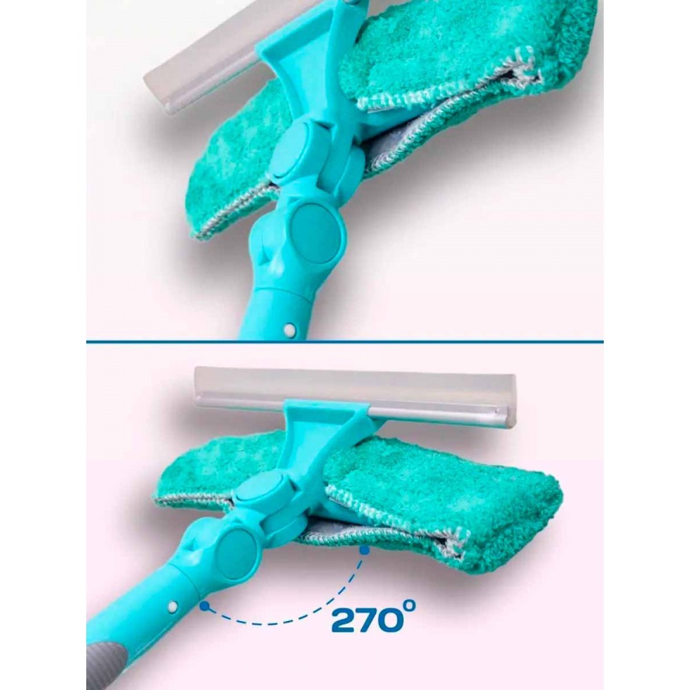 Еще одной особенностью является наличие двух насадок на ручке. Одна насадка сделана из микро-рассеченного волокна, которая идеально моет окно во влажном виде. Она легко снимается и стирается.