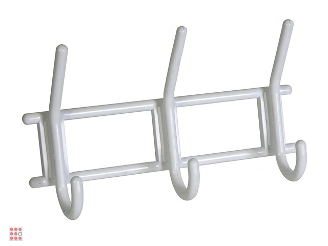 Вешалка 3-х крючковая снежно-белого цвета выполнена из прочного ABS пластика. Крючок-вешалка крепится на стену и используется для хранения легких вещей: ветровок, курток, шляп, сумок и т.п.